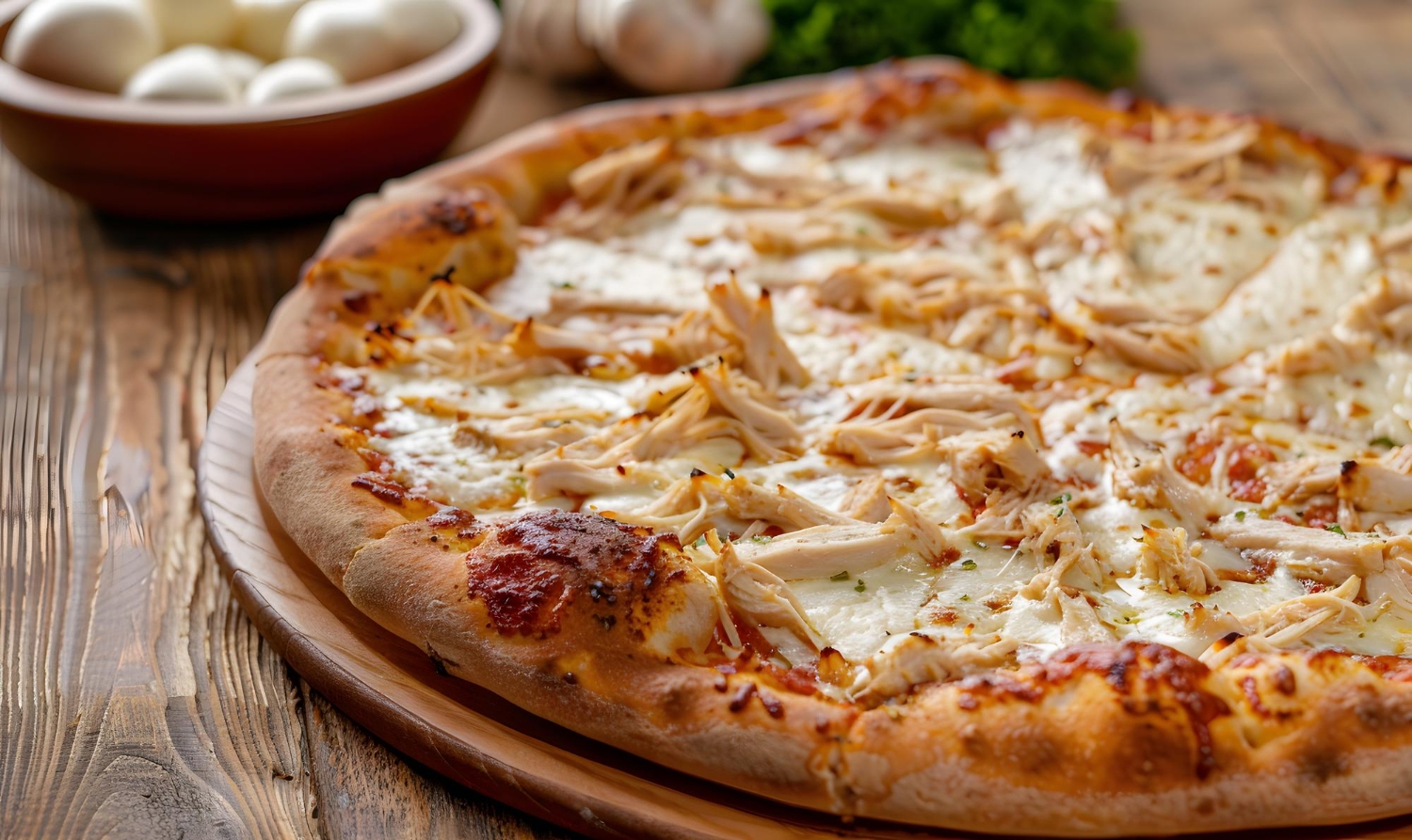 A base de tudo começa com uma massa bem-feita. Aquela que é leve, saborosa e assa no ponto certo, deixando as bordas crocantes por fora e macias por dentro. Sobre ela, o frango desfiado entra como protagonista. Mas não é qualquer frango. O ideal é aquele bem temperado, cozido lentamente para manter a suculência e misturado com ervas que realçam o sabor, sem roubar a cena.